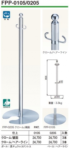 シロクマ FPP-0105-クローム/鏡面フロアパーティションポール クローム/鏡面